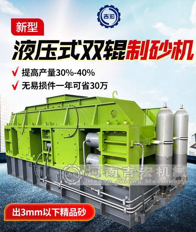 液壓對輥制砂機也叫液壓對輥式破碎機或者鵝河卵石制砂機,它就是把老式的彈簧對輥制砂機進行了升級改造,把原來的彈簧換成了液壓裝置,從而來控制設備的壓力。適用于煤炭、選礦、燒結礦、水泥、化工、耐火材料、硅酸鹽、玻璃、磨料、陶瓷、建筑材料等工業部門中,中碎和細碎各種高、中等硬度(160Mpa)以下的礦石和巖石之用,尤其在破碎鋼砂行業及建筑材料工業中生產瓜米石和綠豆沙等產品,有較一般破碎機械更優異的效果,也是眾多制砂機中制砂效果上等的設備。
