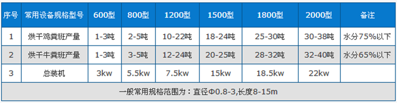 雞糞烘干機(jī)技術(shù)參數(shù)