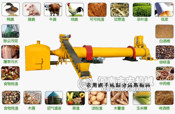 吉宏機械生產的果渣烘干機可以很好的對果渣(蘋果渣、番茄渣、梨渣等)、玉米渣、飼料、蛋白粉、藥渣等進行干燥。對于果渣自身不易烘干,因為水分多存在于內部,也不能一次進行烘干,否者會將營養成分散失掉。吉宏機械生產的新型果渣烘干機是滾筒烘干機的一種,結構緊湊,壓制力大,剛性強產量高,針對果渣的物理特性采用了逆流烘干技術,可將含水分80%的濕果渣,快速烘干至含水分13%以下的干成品。一次性降到12%以下,使烘出的物料色澤好,無糊料營養不受損失。