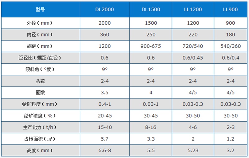 螺旋溜槽適用于分選粒度0.3--0.02毫米細料的鐵礦、鈦鐵礦、鉻鐵礦、硫鐵礦、鋯英石、金紅石、獨居石、磷乙礦、鎢礦、錫礦、鉭礦、鈮礦以及具有比重差異的其他有色金屬、稀有金屬和非金屬礦物體。本設備具有選別過程穩定、容易控制、給礦濃度允許變化范圍大、富集比高、回收率高、占地面積小、耗水量少、結構簡單、無需動力、處理量大、安裝簡易、操作方便、投資小見效快等優點。
